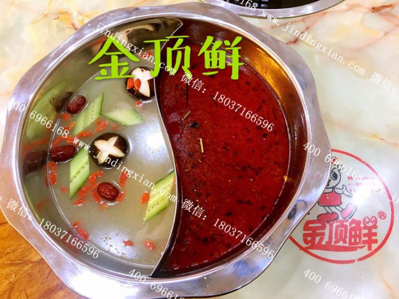 "金顶鲜""胡羊排"选用盐池滩胡羊排,加入专用配料佐料,经公司秘制量化操作后上餐桌。出锅羊排色泽鲜亮令人垂涎欲滴,入口甘腴醇厚,如漆似胶,回味无穷,具有"香、辣、鲜兼备,色、香、味俱全"的风味特点。食排后加汤又涮散子、菜品,一锅两吃,汤浓鲜香,食法妙趣,老少皆宜,更具有强身益气,美肤养颜之功效。